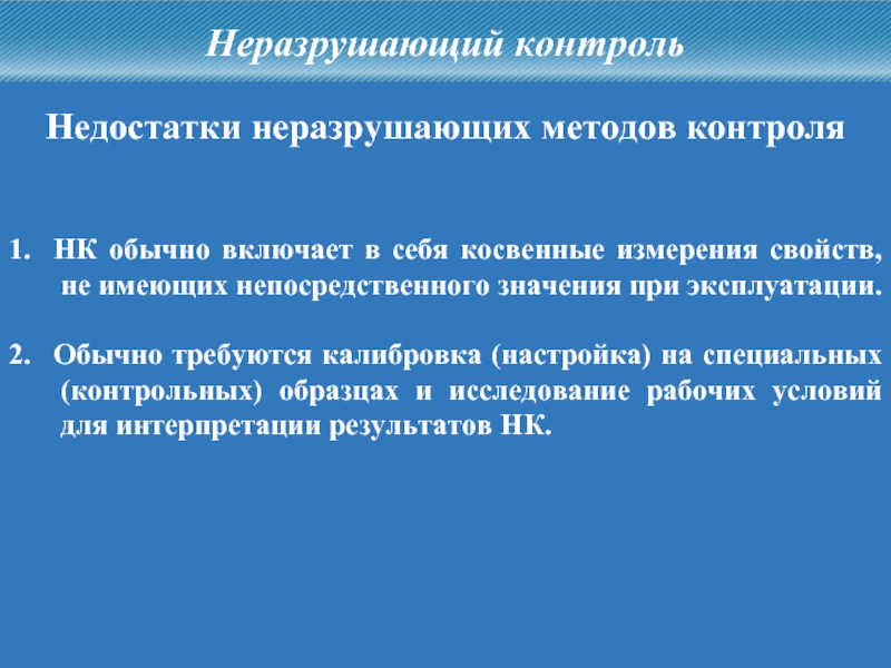2. Обычно требуются калибровка (настройка) на специальных (контрольных) образцах и исследование рабочих условий для интерпретации результатов НК.