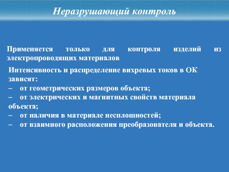 4. Могут быть проведены испытания многими НМК, каждый из которых чувствителен к различным свойствам или частям материала или детали.