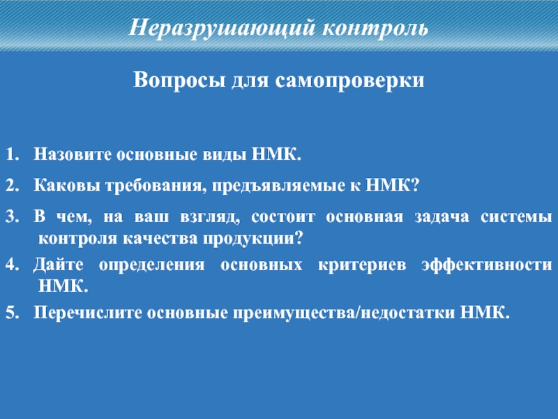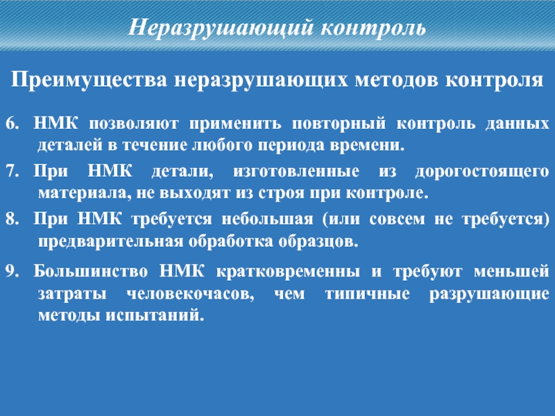 7. При НМК детали, изготовленные из дорогостоящего материала, не выходят из строя при контроле.