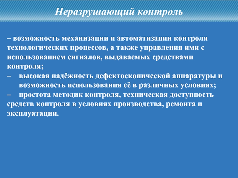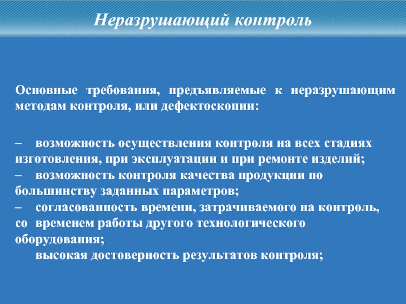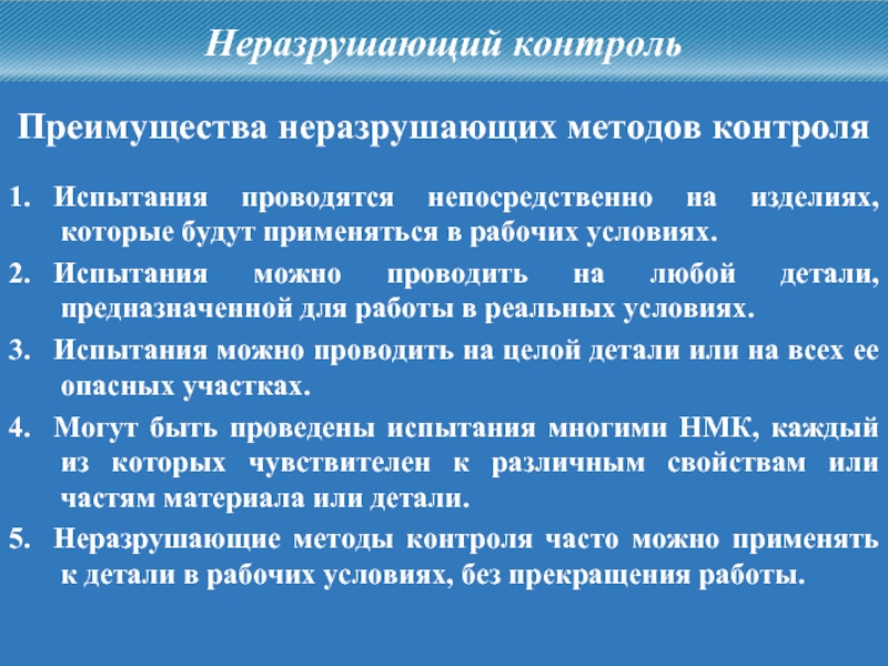 5. Неразрушающие методы контроля часто можно применять к детали в рабочих условиях, без прекращения работы.