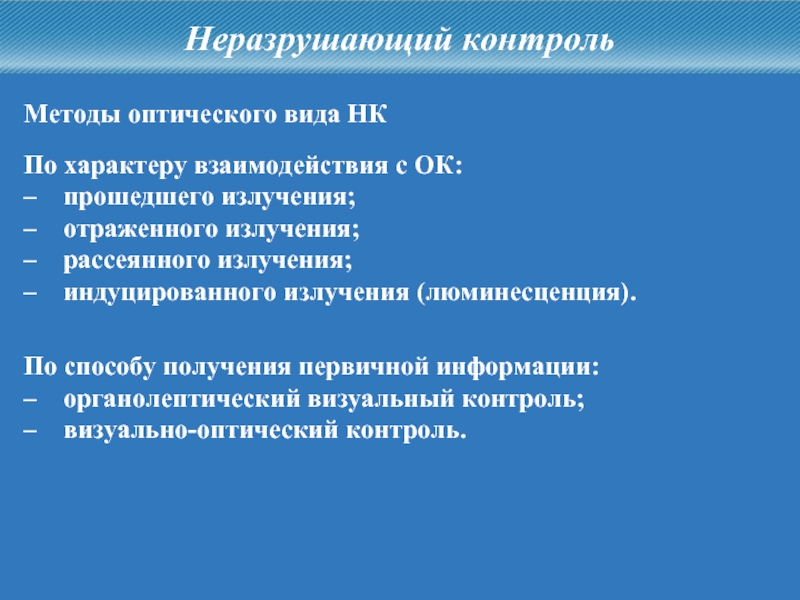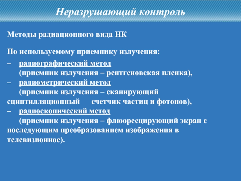 2. По опасности для обслуживающего персонала выделяются радиационные и капиллярные методы.