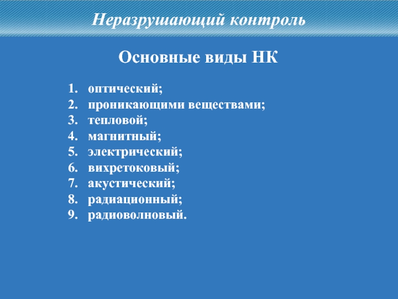 3. С точки зрения автоматизации контроля наиболее благоприятными являются: вихретоковый; магнитный; радиационный виды и некоторые методы тепловых методов НК.