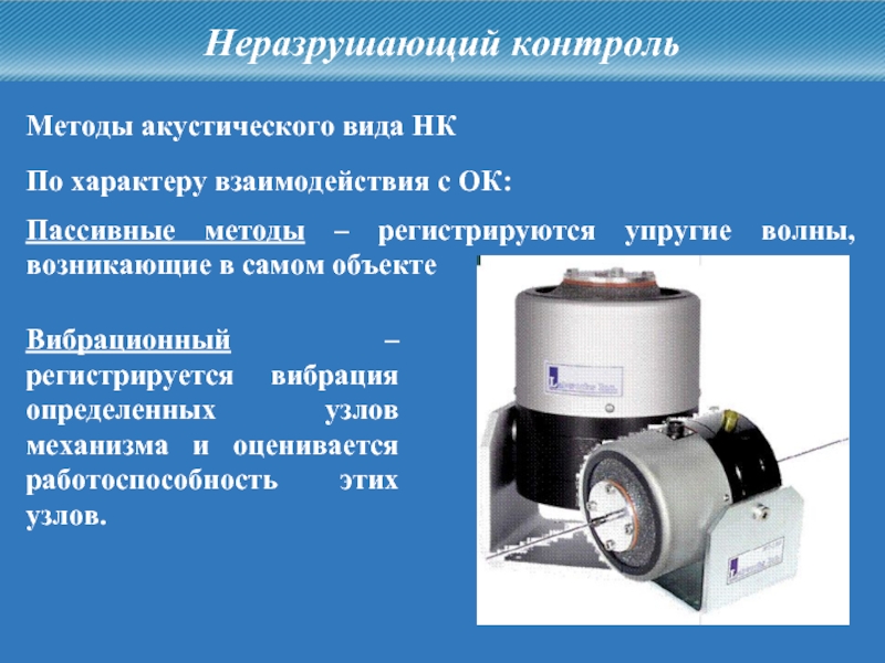 Вибрационный – регистрируется вибрация определенных узлов механизма и оценивается работоспособность этих узлов.