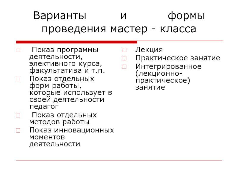Показ программы деятельности, элективного курса, факультатива и т.п.