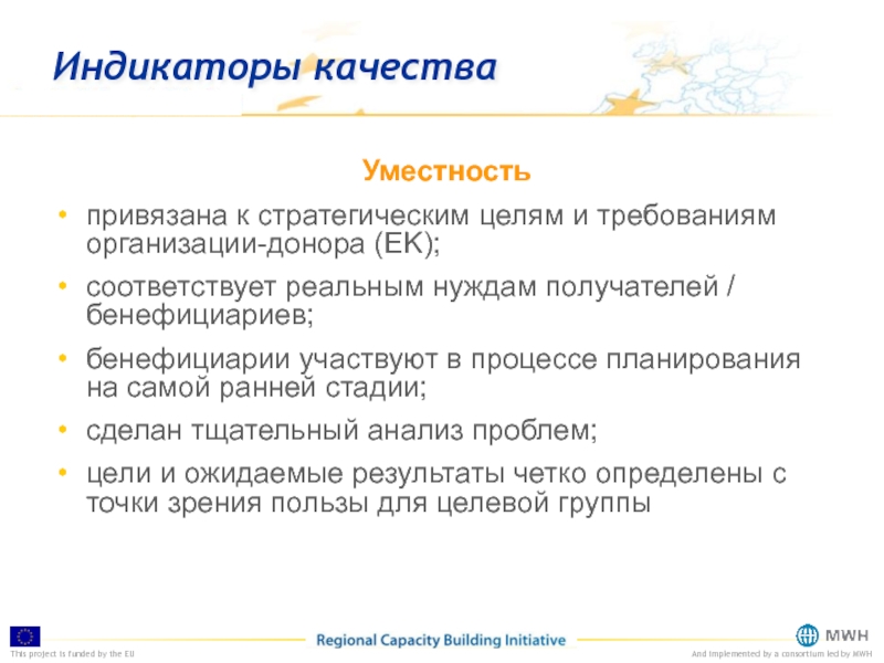 уместными (по отношению к целям, результатам и мероприятиям проекта)