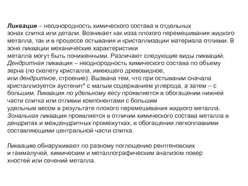 Слайд 59Ликвация – неоднородность химического состава в отдельных