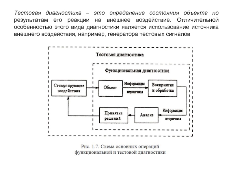 Слайд 3Тестовая диагностика – процесс определения состояния объекта по его реакции на
