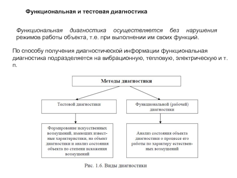 По способу получения диагностической информации функциональная диагностика подразделяется на вибрационную, тепловую, электрическую и т.п.