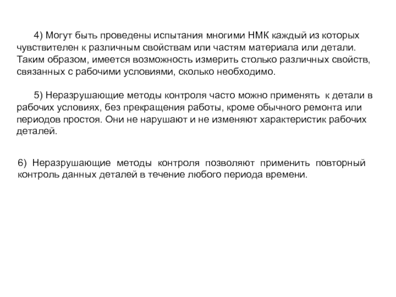 6) Неразрушающие методы контроля позволяют применить повторный контроль данных деталей в течение любого периода времени.