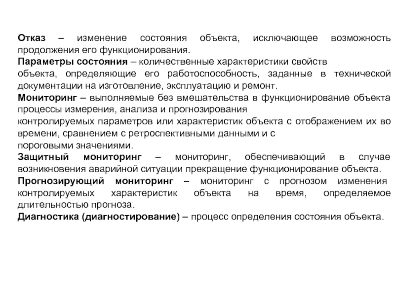 Слайд 2Отказ – изменение состояния объекта, исключающее возможность продолжения его функционирования.