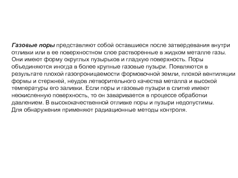 Слайд 60Газовые поры представляют собой оставшиеся после затвердевания внутри отливки или в