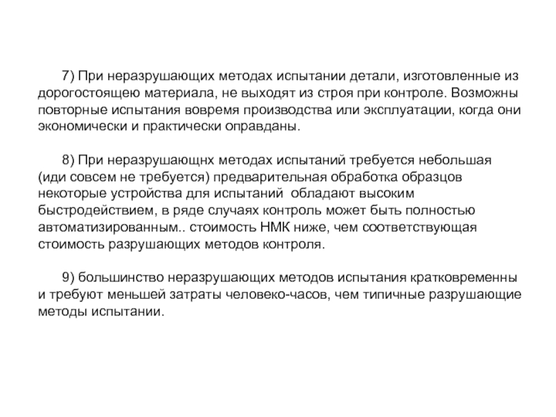 Слайд 187) При неразрушающих методах испытании детали, изготовленные из дорогостоящею материала, не