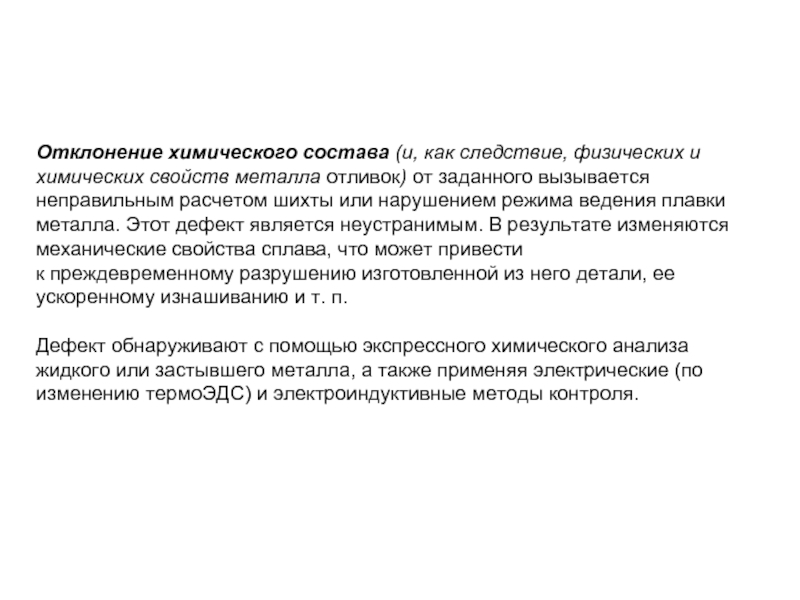 Слайд 58Отклонение химического состава (и, как следствие, физических и химических свойств металла