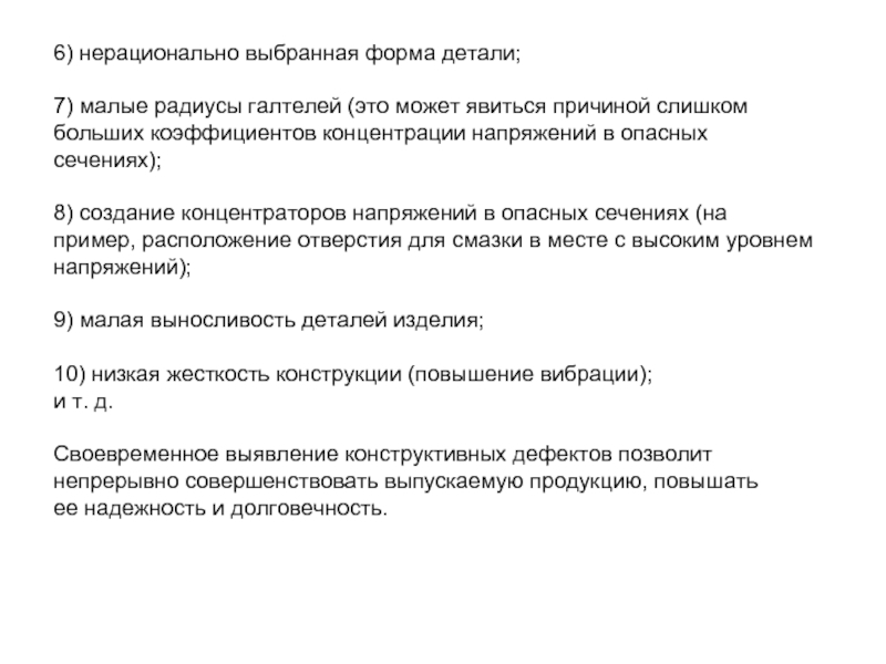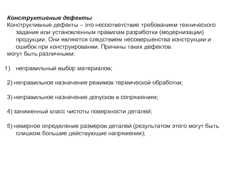 правилам разработки (модернизации) продукции. Они являются следствием несовершенства конструкции и ошибок при конструировании. Причины таких дефектов