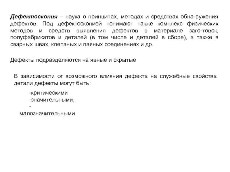 Дефект – изменение состояния объекта в процессе его изготовления, эксплуатации или ремонта, которое потенциально может привести к уменьшению степени его работоспособности.