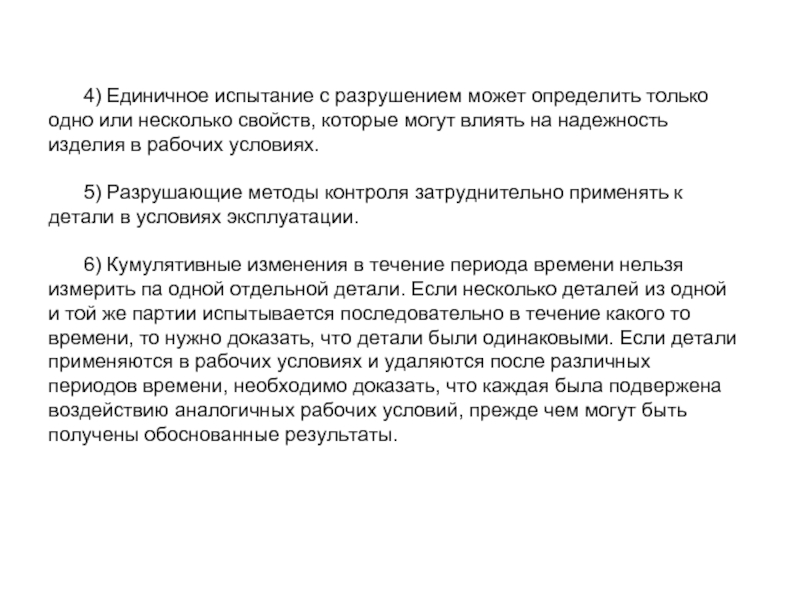 Слайд 144) Единичное испытание с разрушением может определить только одно или несколько