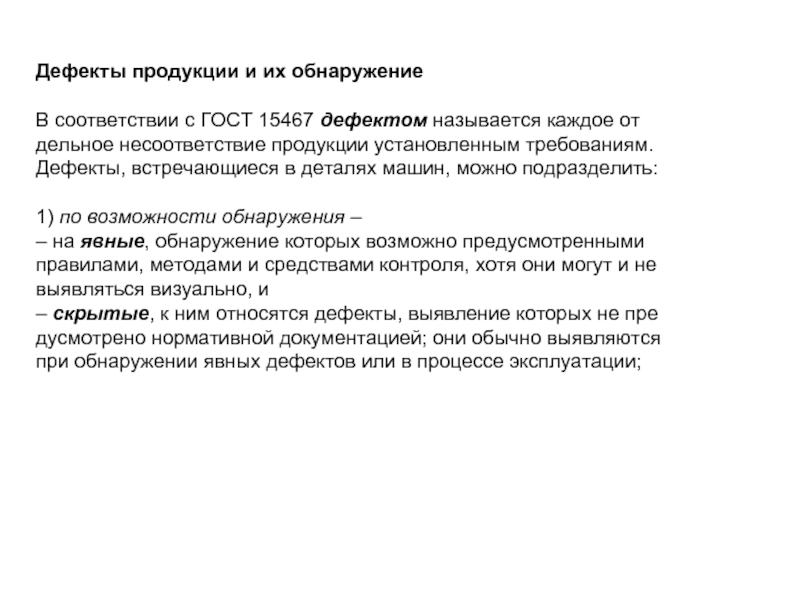 документации на изготовление или поставку продукции. Они возникают обычно в результате нарушений техпроцесса при производстве или восстановлении деталей, узлов и машин в целом, а так же при неправильно назначенных технологических процессах.