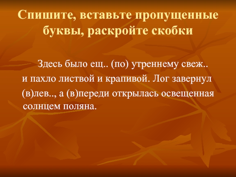 Слайд 9Спишите, вставьте пропущенные буквы, раскройте скобки