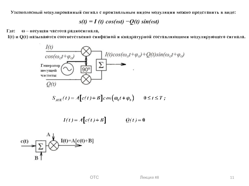 I(t) и Q(t) называются соответственно синфазной и квадратурной составляющими модулирующего сигнала.