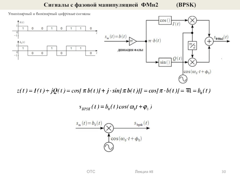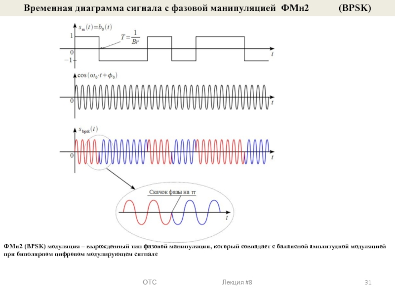 ФМн2 (BPSK) модуляция – вырожденный тип фазовой манипуляции, который совпадает с балансной амплитудной модуляцией при биполярном цифровом модулирующем сигнале