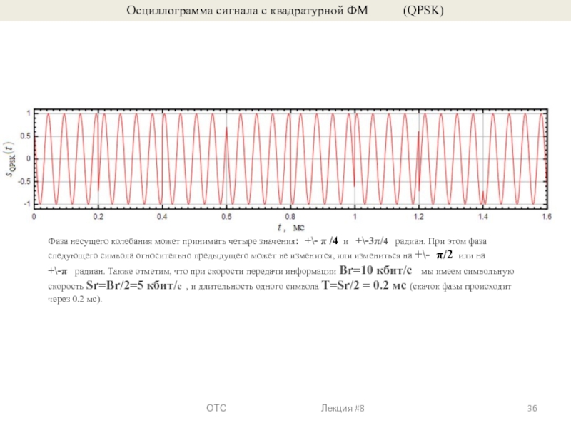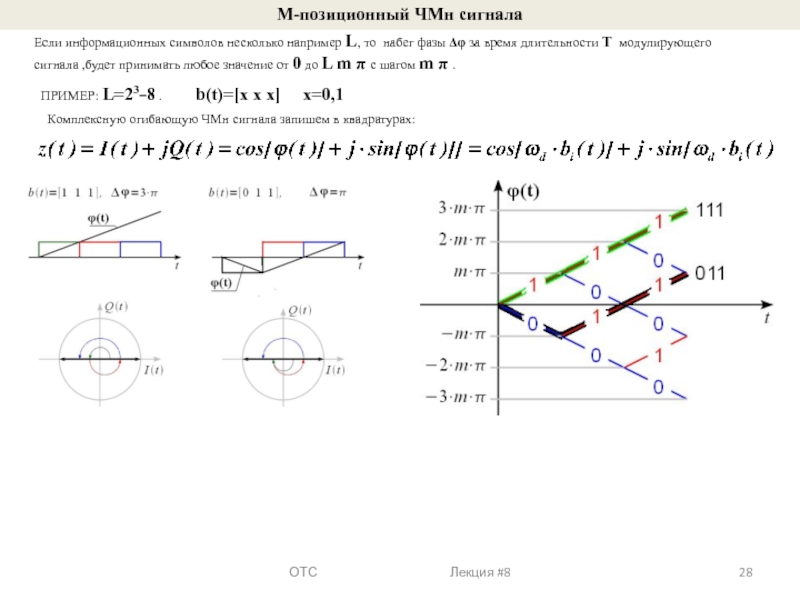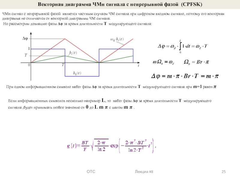 Если информационных символов несколько например L, то набег фазы Δφ за время длительности Т модулирующего сигнала ,будет принимать любое значение от 0 до L m π с шагом m π .