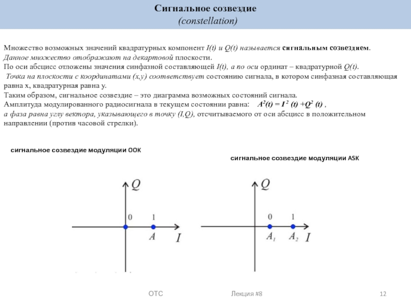 Множество возможных значений квадратурных компонент I(t) и Q(t) называется сигнальным созвездием.