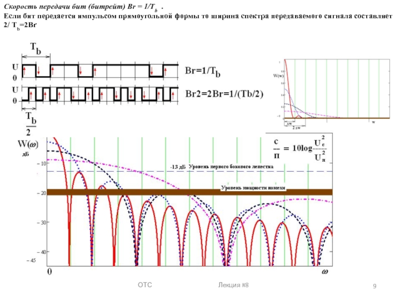 Если бит передается импульсом прямоугольной формы то ширина спектра передаваемого сигнала составляет