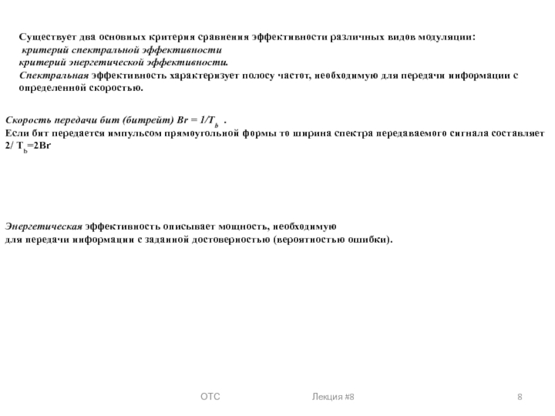 Спектральная эффективность характеризует полосу частот, необходимую для передачи информации с