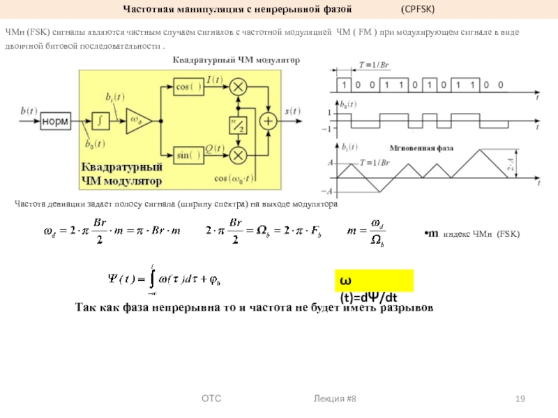 ЧМн (FSK) сигналы являются частным случаем сигналов с частотной модуляцией ЧМ ( FM ) при модулирующем сигнале в виде двоичной битовой последовательности .