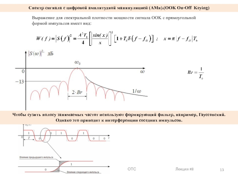 Выражение для спектральной плотности мощности сигнала OOK с прямоугольной