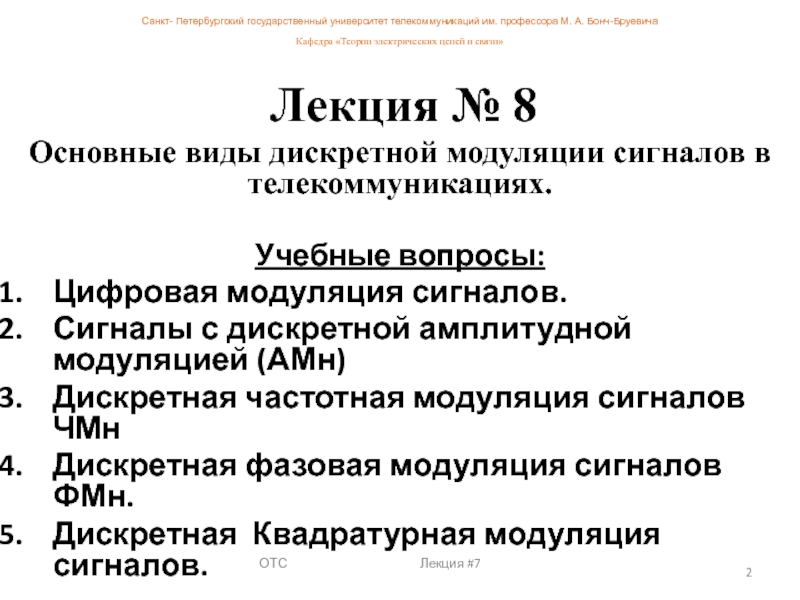 Санкт- Петербургский государственный университет телекоммуникаций им. профессора М. А. Бонч-Бруевича