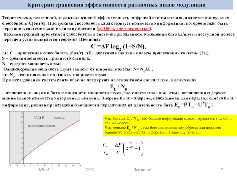 Чем больше Eb / N 0 , тем больше информации можно передавать в одной и той же полосе.
