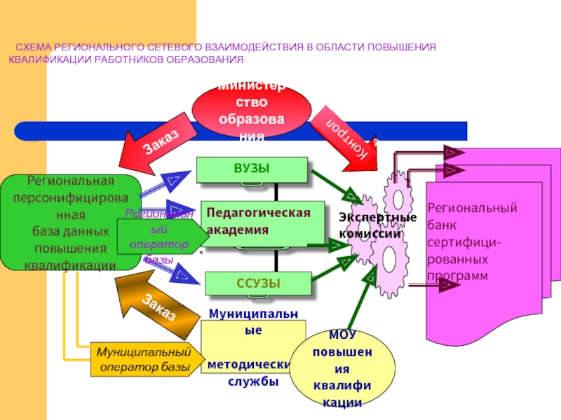 Слайд 5 СХЕМА РЕГИОНАЛЬНОГО СЕТЕВОГО ВЗАИМОДЕЙСТВИЯ В ОБЛАСТИ ПОВЫШЕНИЯ КВАЛИФИКАЦИИ РАБОТНИКОВ ОБРАЗОВАНИЯ