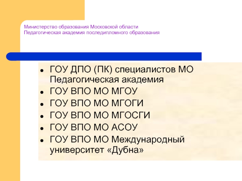 Коллегия министерства образования Московской области «О ходе модернизации непрерывного педагогического образования»