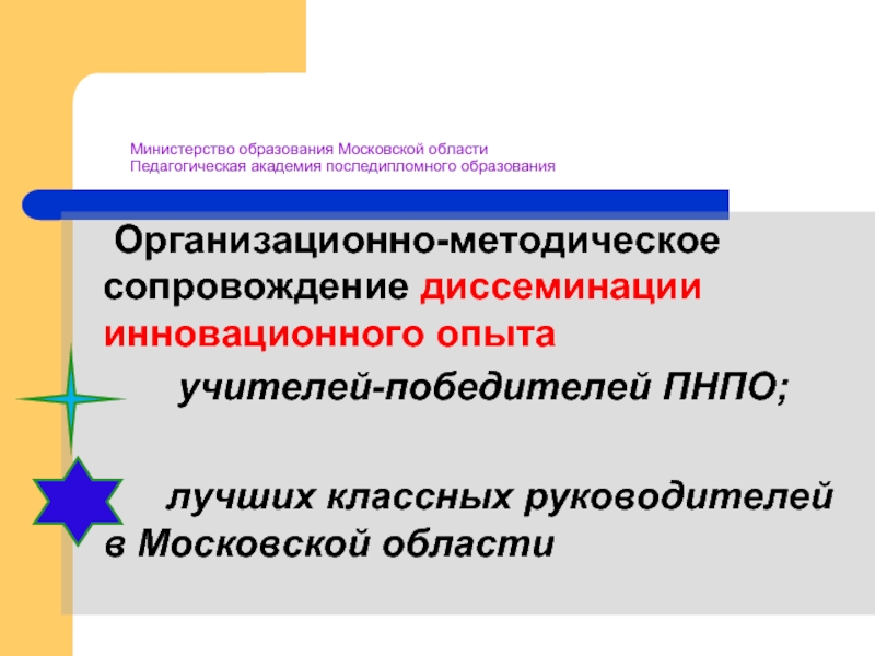 Организационно-методическое сопровождение диссеминации инновационного опыта