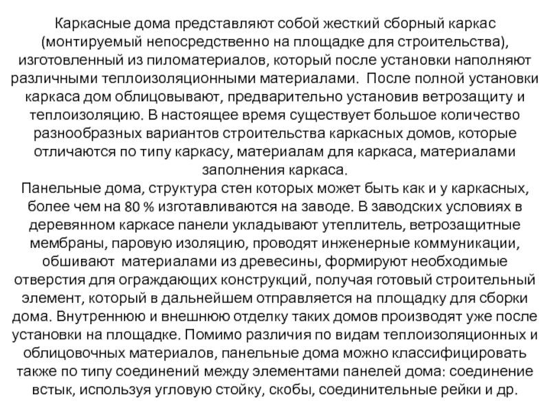 Слайд 19Каркасные дома представляют собой жесткий сборный каркас (монтируемый непосредственно на площадке