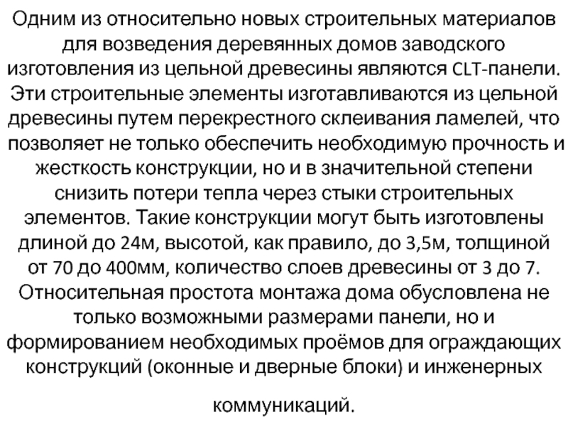 Слайд 11Одним из относительно новых строительных материалов для возведения деревянных домов заводского