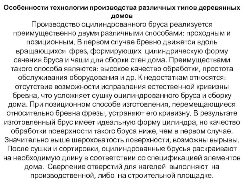 Слайд 15Особенности технологии производства различных типов деревянных домов