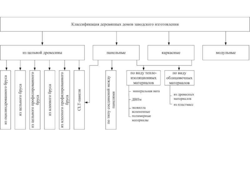 из цельной древесины, за исключением CLT-панелей, набором материалов для их изготовления. Они отличаются по виду тепло- и пароизоляционных, ветрозащитных и облицовочных материалов.