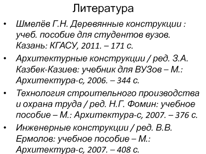 Шмелёв Г.Н. Деревянные конструкции : учеб. пособие для студентов вузов. Казань: