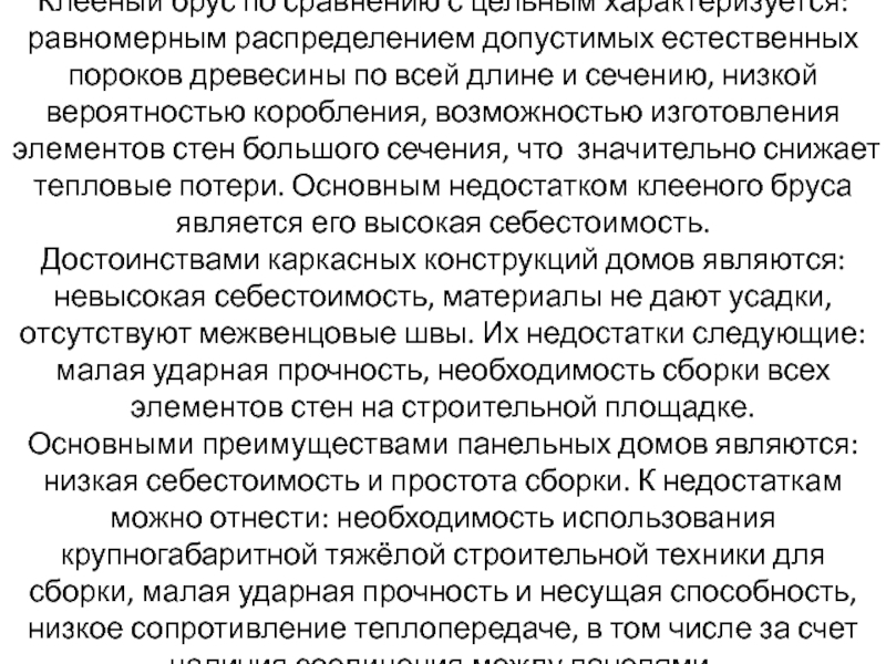 пороков древесины по всей длине и сечению, низкой вероятностью коробления, возможностью изготовления элементов стен большого сечения, что значительно снижает тепловые потери. Основным недостатком клееного бруса является его высокая себестоимость.