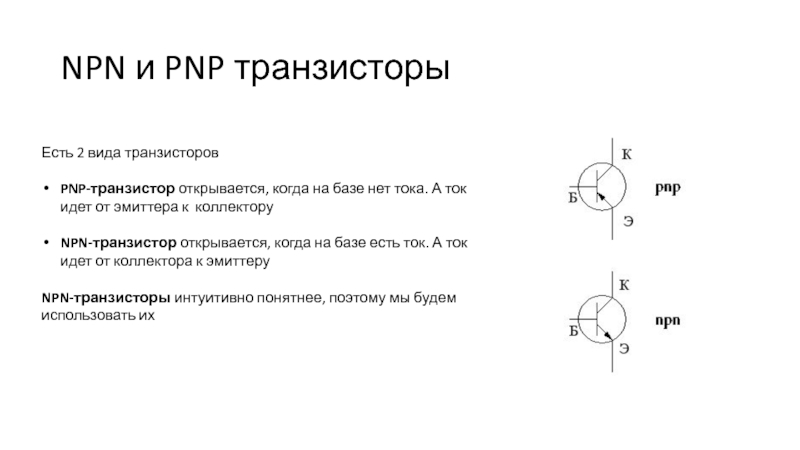 Слайд 10NPN и PNP транзисторы