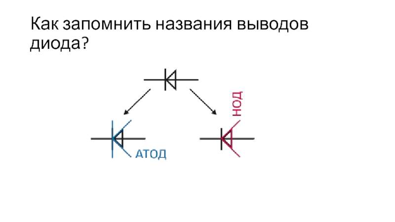Слайд 8Как запомнить названия выводов диода?