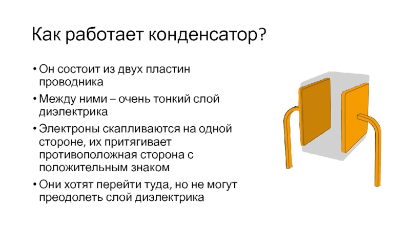 Слайд 4Как работает конденсатор?