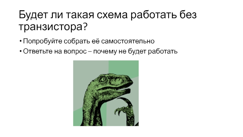 Слайд 12Будет ли такая схема работать без транзистора?