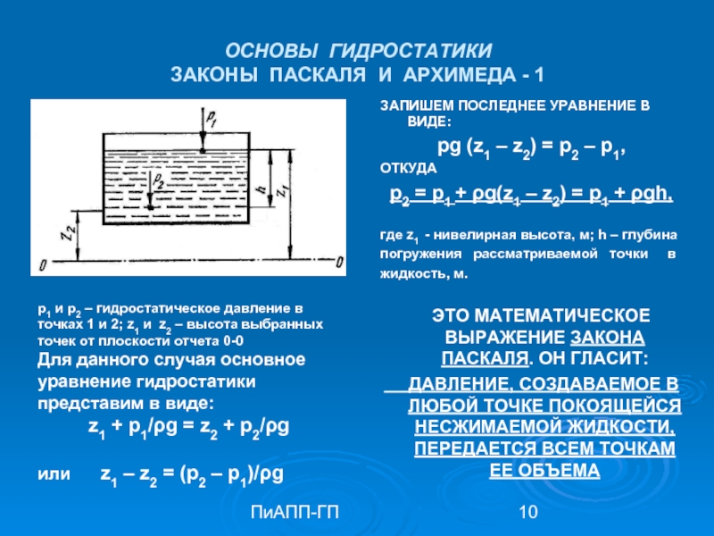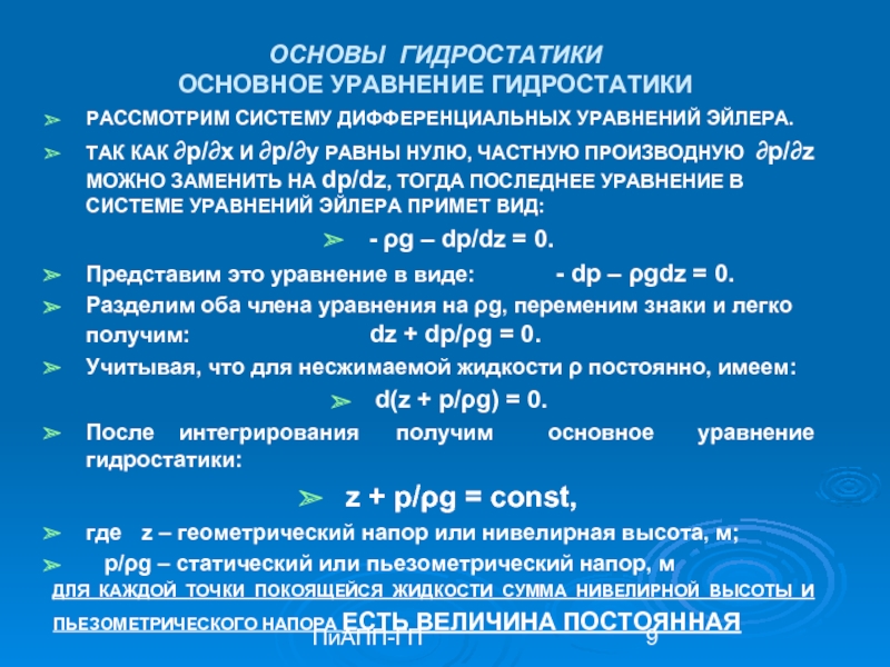 ОСНОВНОЕ УРАВНЕНИЕ ГИДРОСТАТИКИ