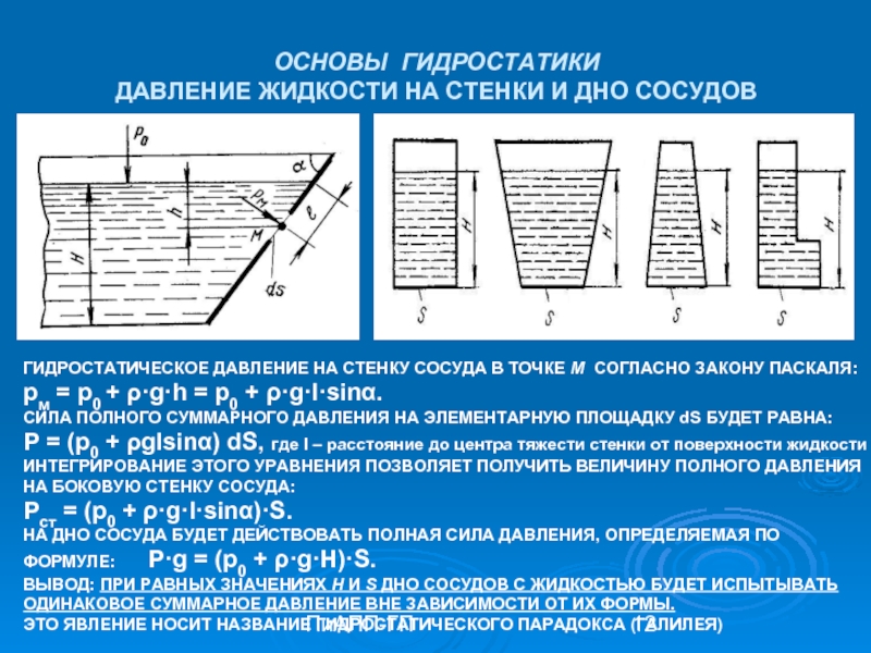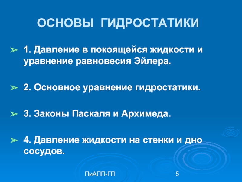 ОСНОВЫ ГИДРОСТАТИКИ.