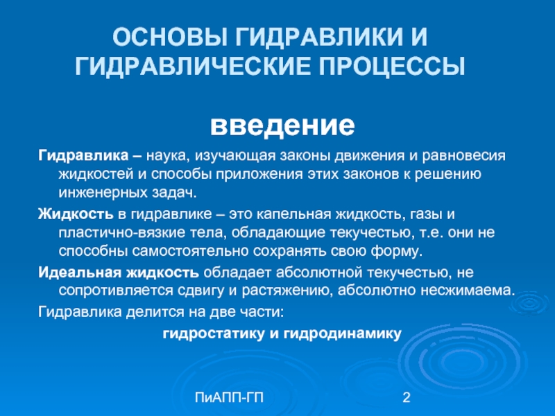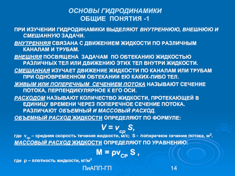 ОСНОВЫ ГИДРОДИНАМИКИ.