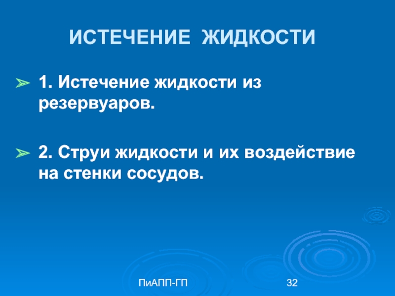 ИСТЕЧЕНИЕ ЖИДКОСТИ.