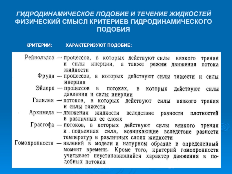 ГИДРОДИНАМИЧЕСКОЕ ПОДОБИЕ И